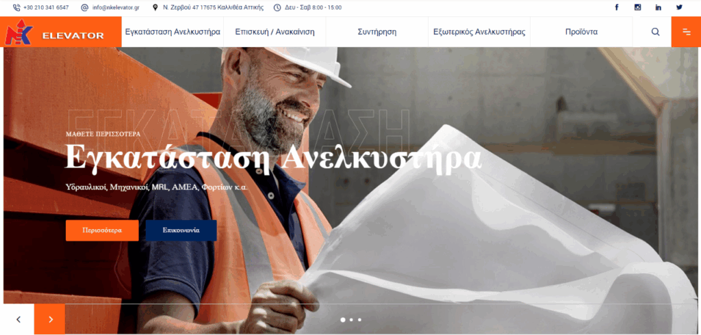 The official website of NK Elevator, showcasing the company’s elevator solutions, services, and expertise in vertical transportation systems. Live url: https://nkelevator.gr homepage screenshot: https://wisegigs.eu/portfolioimages/nkelevator.gr.png